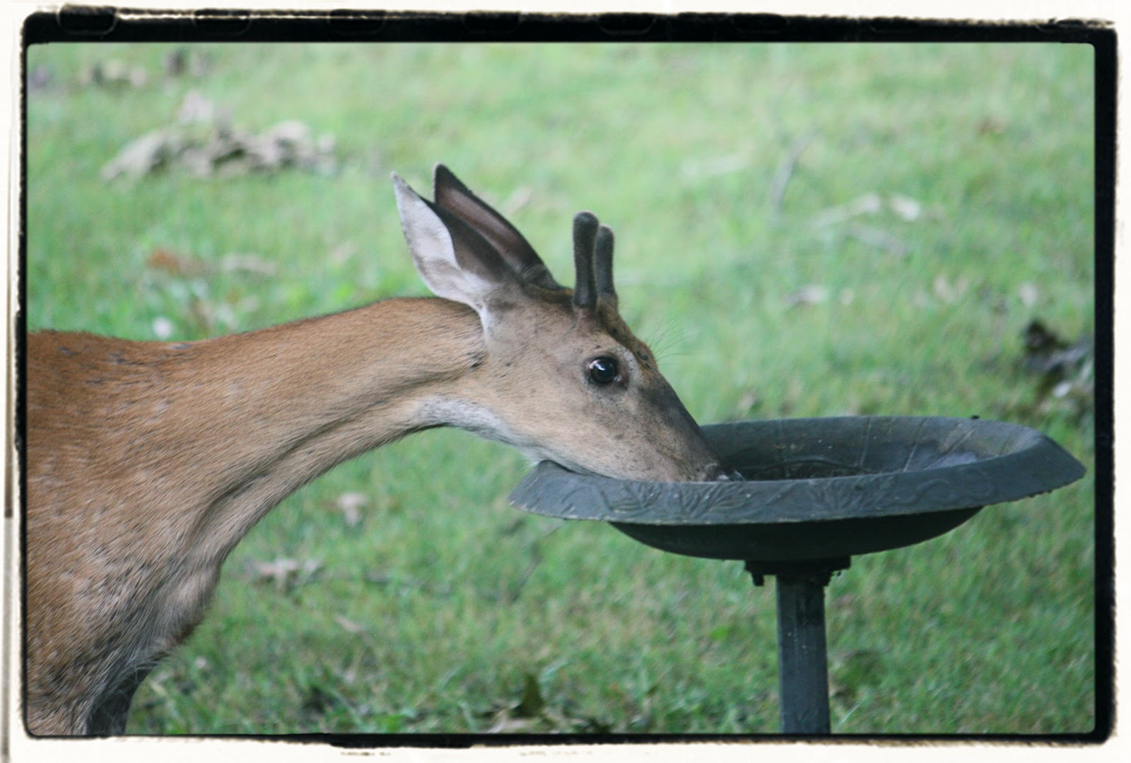 The pic of the buck slurping up the water is priceless! (It makes me thirsty.)